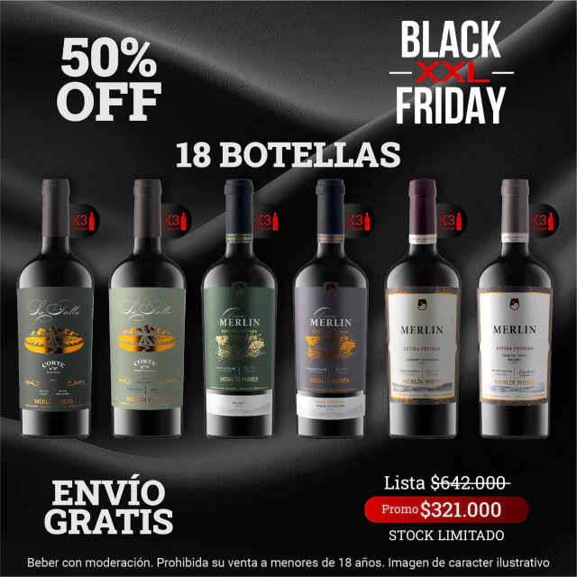 - 3 botellas de MERLIN ESTIBA PRIVADA CABERNET SAUVIGNON – Edición Limitada – Guarda de Familia – Crianza de 12 meses en barrica – Bodega Merlín Wines. Maridaje sugerido: Bife de chorizo o carnes ahumadas.