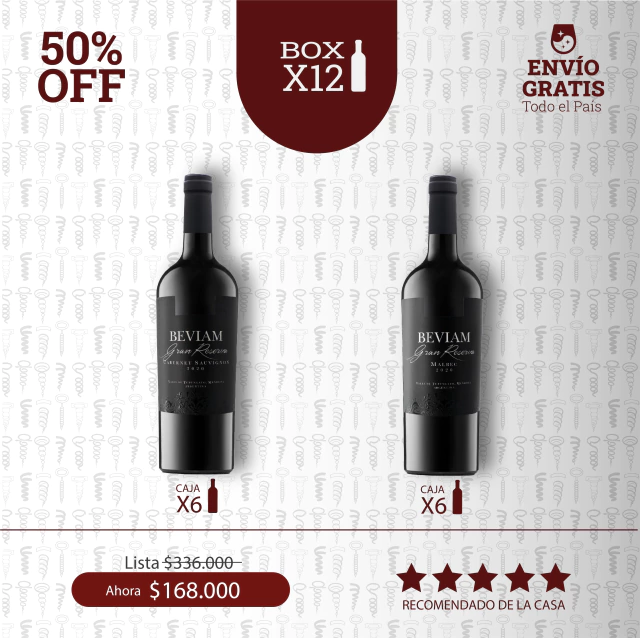 6 Botellas de Beviam Gran Reserva Cabernet Sauvignon 2020 – 24 meses de barrica - Bodega Cavas Del 23 – Valle de Tupungato, Mendoza - Puntaje Merlín 92 pts.