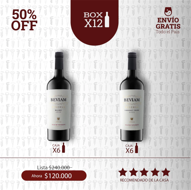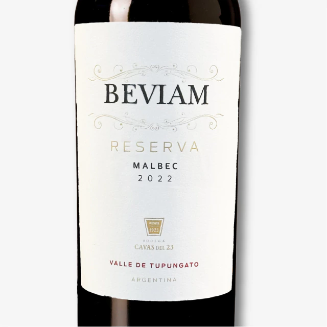 6 Botellas de Beviam Reserva Malbec 2022 – 12 meses de barrica - Bodega Cavas Del 23 – Valle de Tupungato, Mendoza - Puntaje Merlín 90 pts.